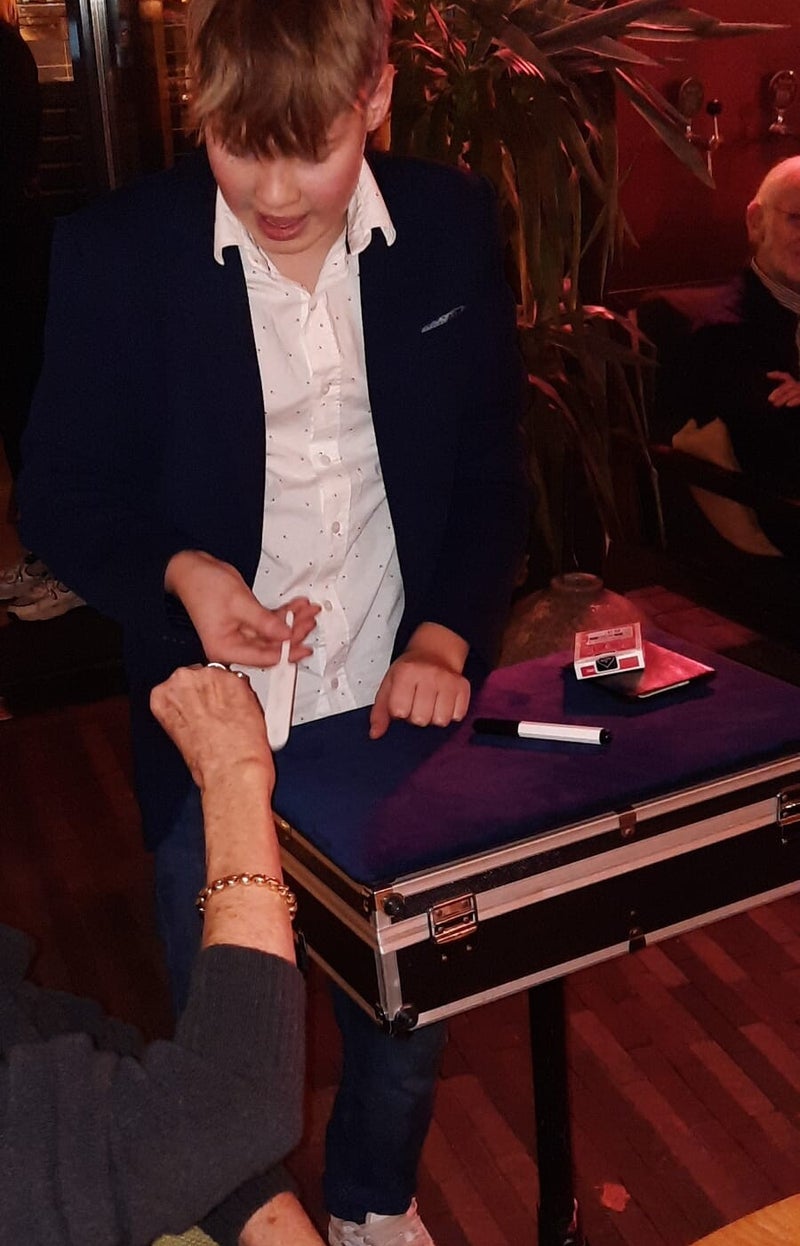 Het bezoeken van shows en goochelwinkels én zijn eigen creativiteit, maken dat Sem Houtenbos een jonge, talentvolle entertainer is geworden.